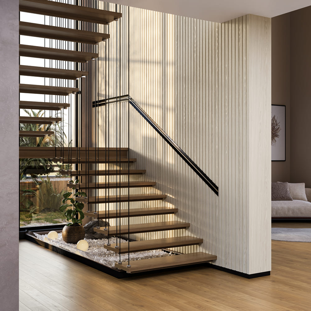 Wall profiles complement decorative panels, bringing depth and unity to interiors. The Cubic, Trian, Wave, and Norm models allow for the use of different forms and varieties together, offering wide decor and color options. Providing an aesthetic appearance in both small and large spaces, wall profiles offer elegant solutions for modern interiors while also allowing for the creation of unique environments.