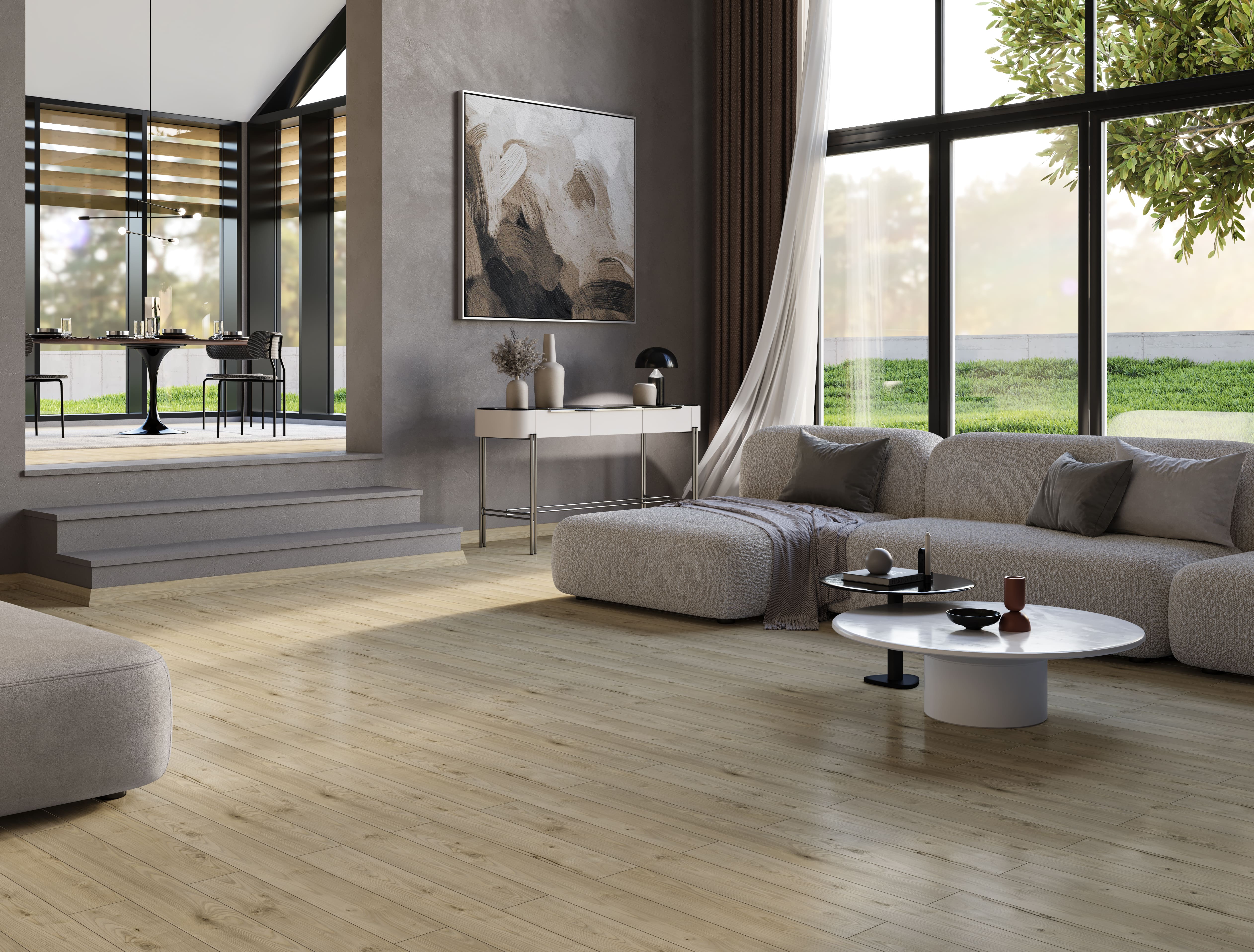 This laminate flooring collection, where the wood texture becomes more prominent, adds depth and character to your interiors. It’s not just the floor—your entire décor is shaped by these details.